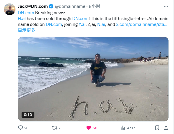 H.ai has recently been successfully sold through the renowned domain trading platform DN.com. This transaction not only marks the beginning of a new digital journey for H.ai, but also sends ripples through the ever-evolving domain name market.