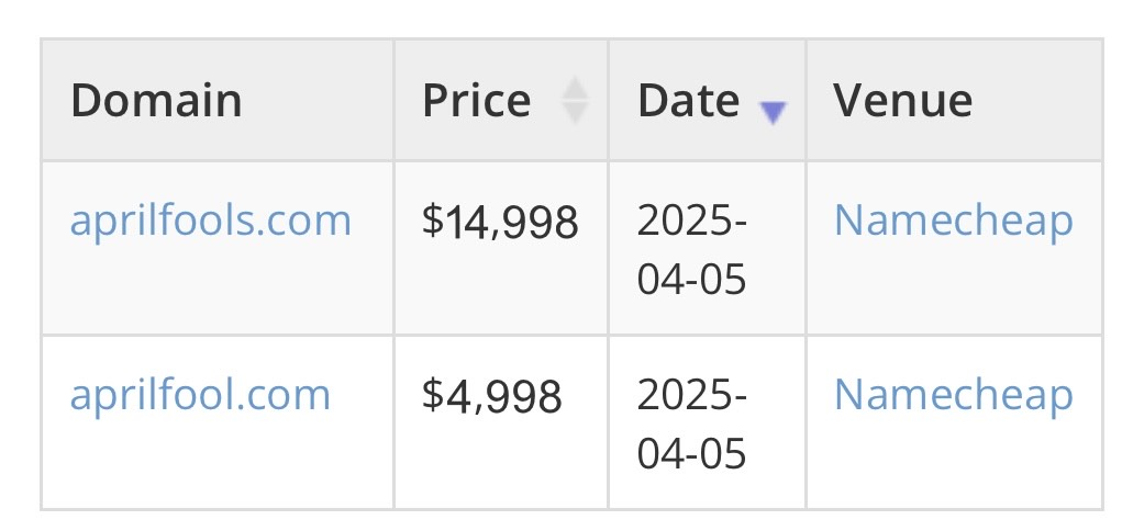 On April 5, 2025, two holiday-themed domain names closely tied to April Fools’ Day were sold in a notable pair of transactions: AprilFools.com changed hands for $14,998, while AprilFool.com was acquired for $4,998. These deals highlight the enduring value and strategic potential of domains associated with widely celebrated cultural events.